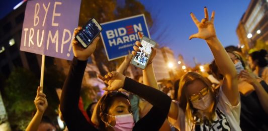 El demócrata Joe Biden ganó el sábado las presidenciales en Estados Unidos, según los medios locales, y sus seguidores no esperaron para salir a celebrar el adiós al presidente Donald Trump desde las calles.